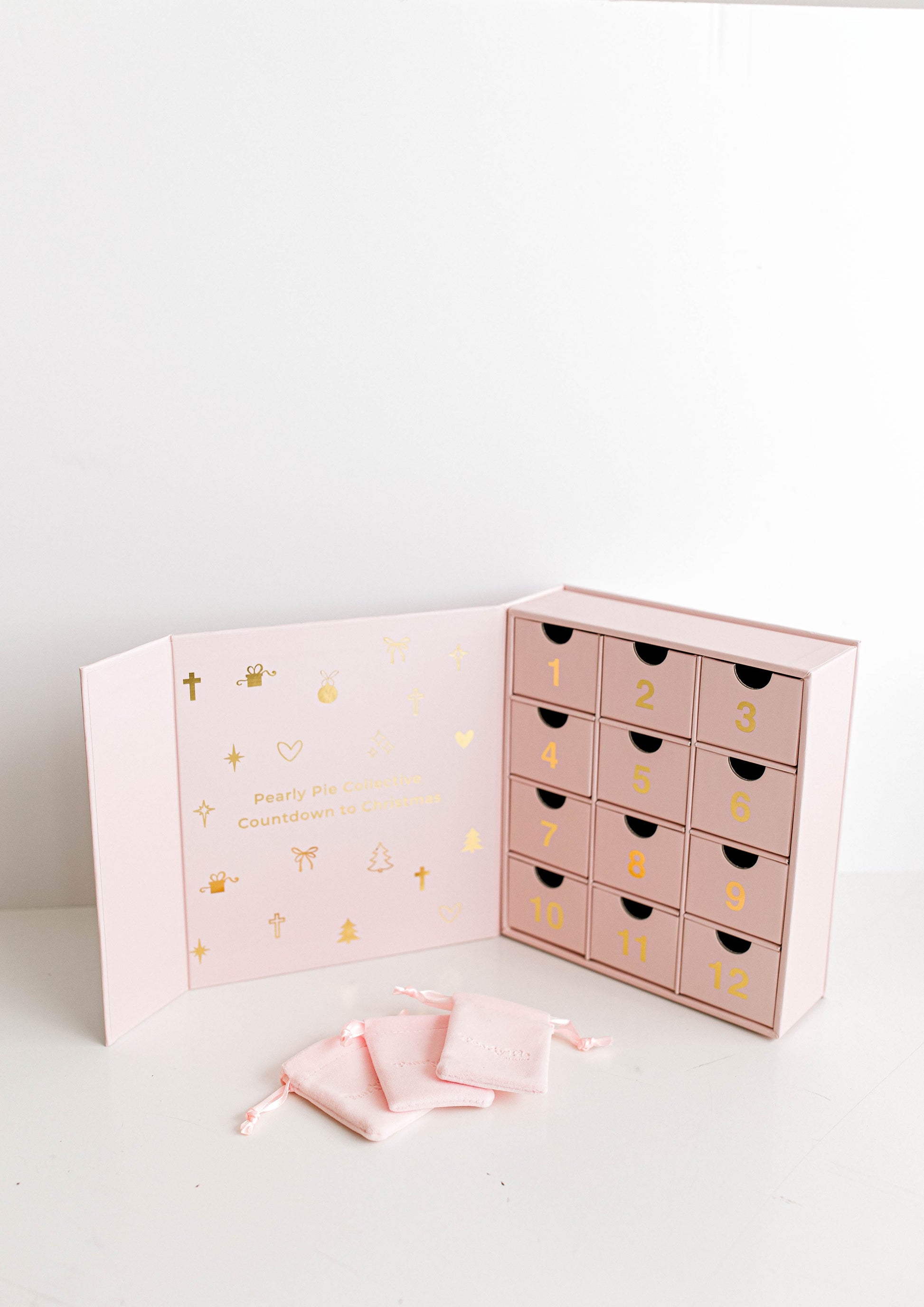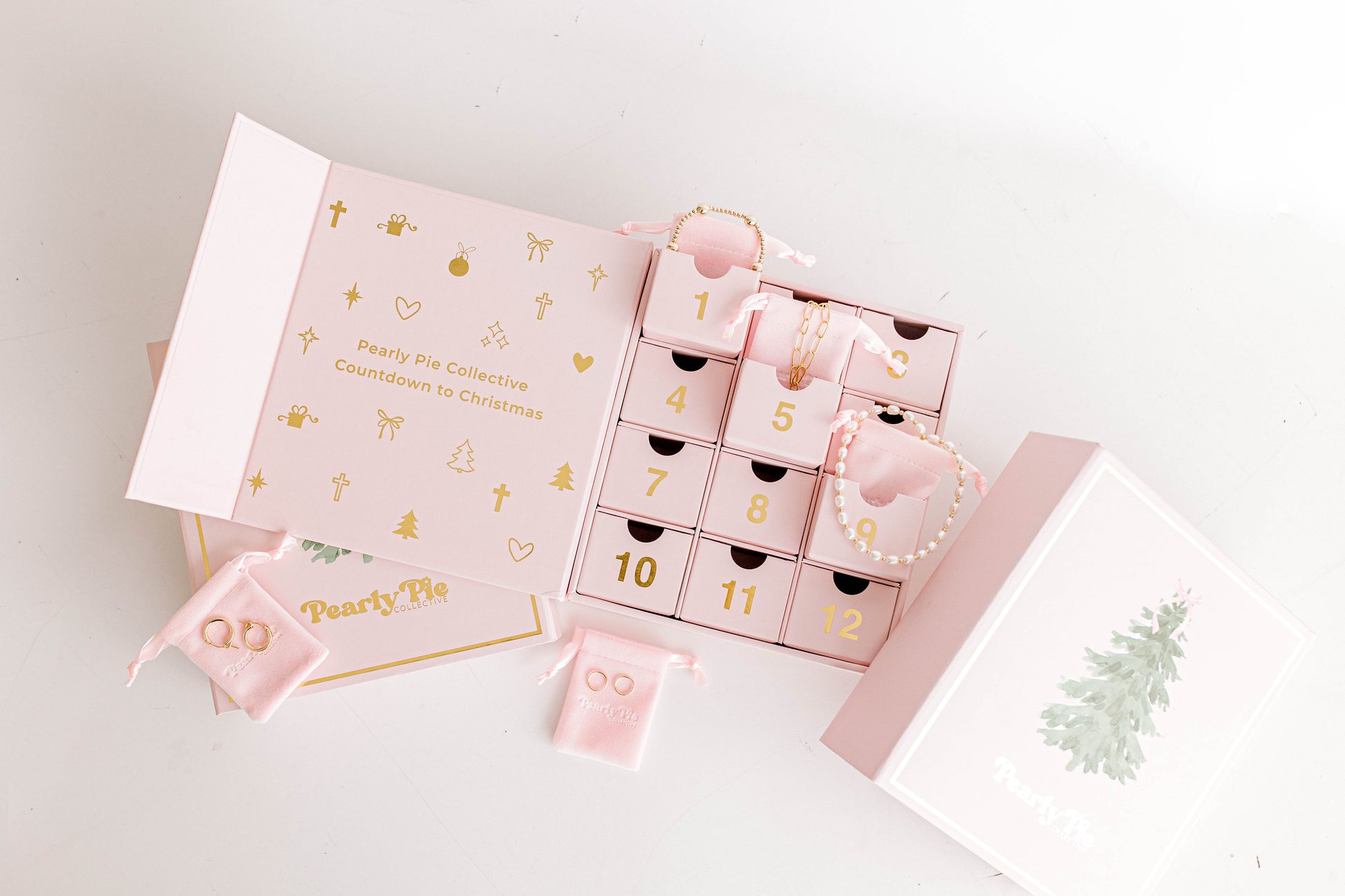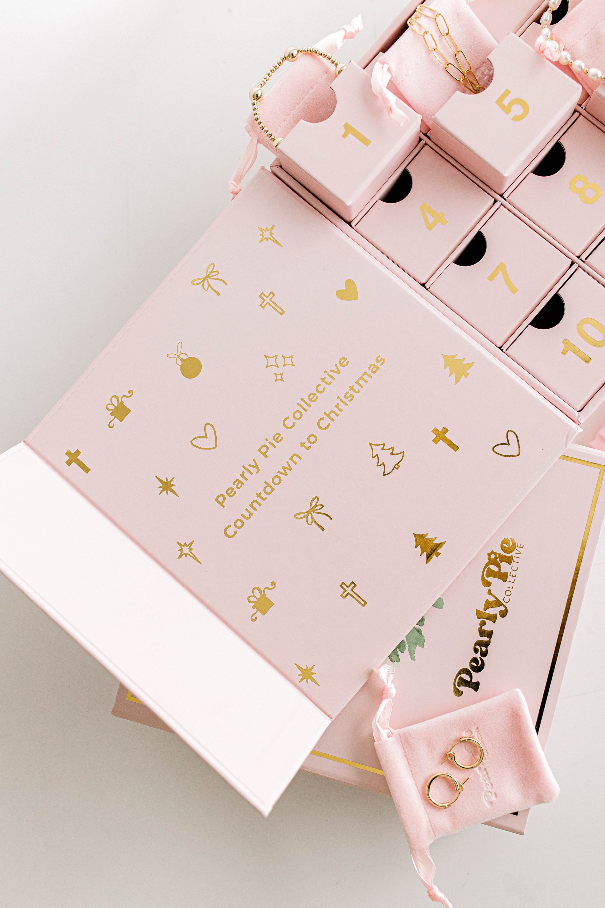 The sweetest way to countdown to Christmas is with a Pearly Pie Collective advent calendar! This calendar is filled with 12 different handmade, hand-strung, 14k gold filled Pearly Pie jewelry pieces. It includes: necklaces, bracelets, earrings, earring charms, and the very first Pearly Pie ring! Several items included are not even currently available on our website!!